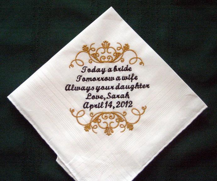 The wedding handkerchief for the father of the bride-hanky-hankie will surely make your father feel very special to you. It is made to be a perfect remembrance of your special day.