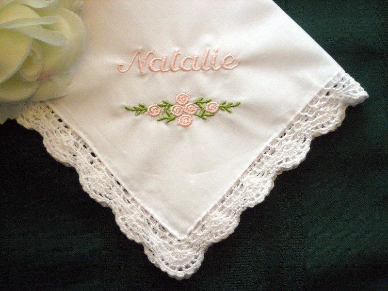 This lovely little handkerchief is perfect for the flower girl or anyone in the wedding party. It would make a pretty addition to a Birthday card for a lady of any age. It is about 12in. square and a scallop hand crocheted edge surrounds the handkerchief on all four sides. Great little something any lady.