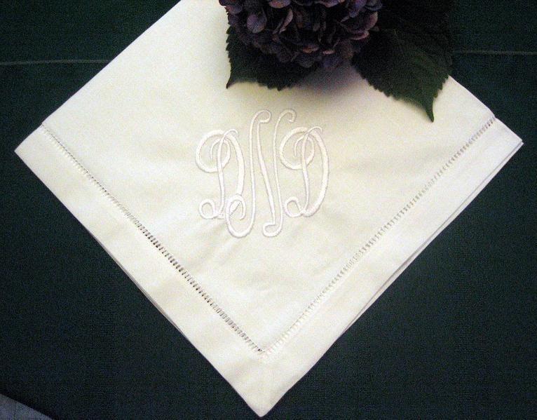 This beautiful set of dinner napkins can be embroidered with your initials in any color you choose. It makes every dinner party special. A perfect wedding or anniversary gift.