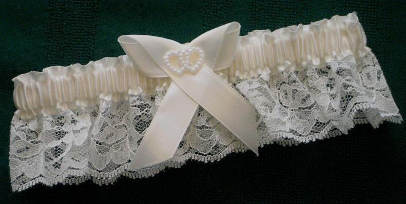 Ivory Heart Garter. This lovely garter is very basic with 2 tiny white hearts sewn in.