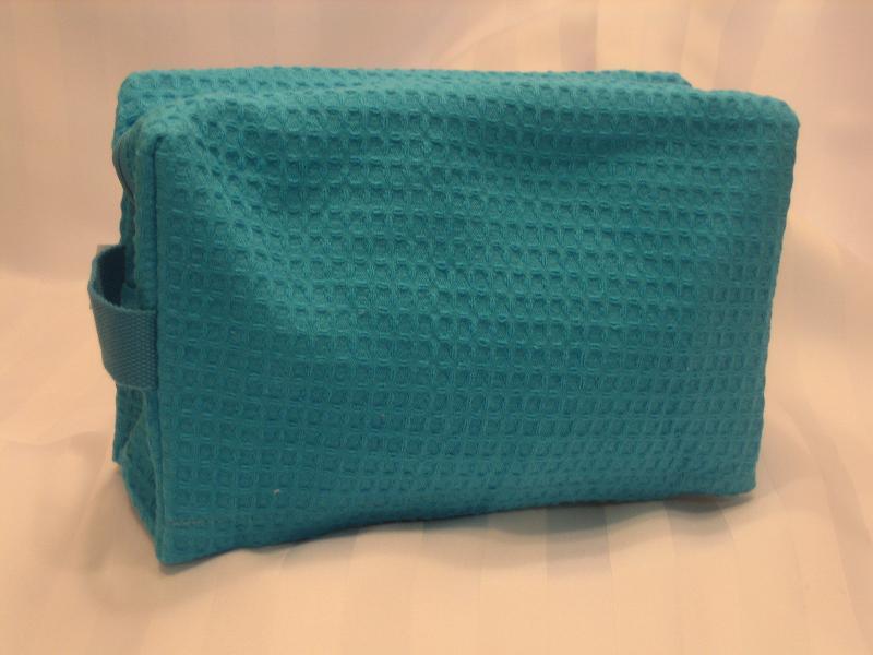 Essentials spa bags, made of 100% quality cotton waffle are fitted with a protective nylon liner. Ideal for taking personal accessories on vacation or for a trip to the fitness center or spa. Put your monogram or short phrase on this bag, such as “I showered with Judy on 6/15/07”. Perfect for bridal shower gifts.