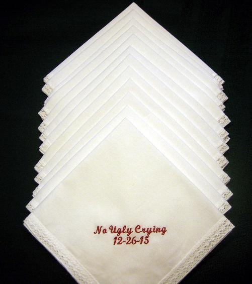 No Ugly Crying Set of Gift Handkerchiefs – Wedding Favors- Wedding Handkerchiefs- Personalized Hankies